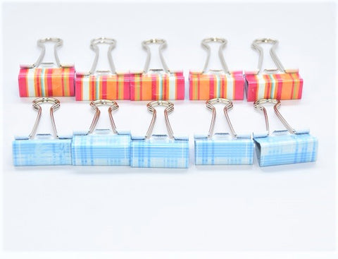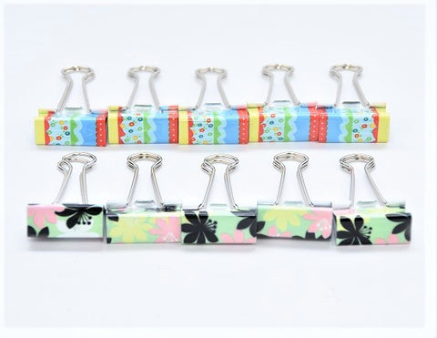 1 1/4 inch Metal Binding Clip Set with 6 different print colors. This is for a set of 30 assorted decorative clips.