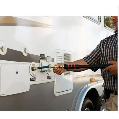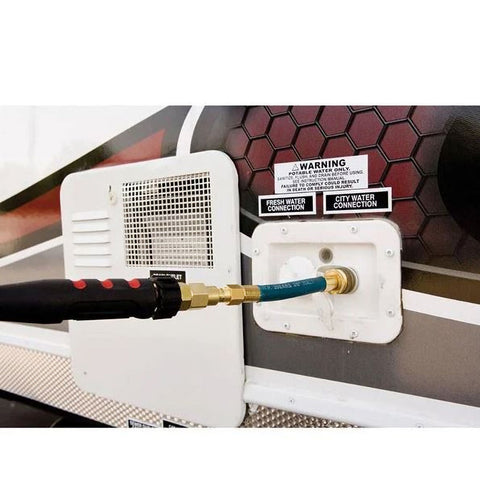 Make winterizing an easy, one-person job! Screw the Blow-Out Hose into your RV's city water inlet, then connect your air compressor quick-connect hose. Unlike other blow-out systems, this system leaves your hands free to open faucets and flush out water lines without assistance. Heavy-duty brass fittings and 45 PSI rated hose offer extra durability. Quick-connect air hose adapter sold separately.