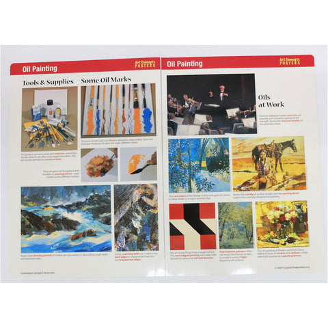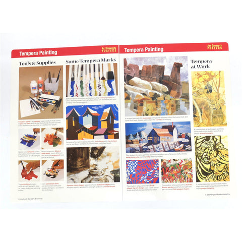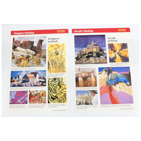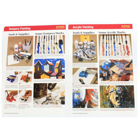 These two-sided laminated posters display on wall or stand on a table to introduce students to basic art concepts. Use them with individuals or groups for reference, reinforcement, or review. This is for a set of two posters, each having reference information on both sides. Perfect for classroom reference, reinforcement or review. Art Concepts Posters include painting, acrylic painting, watercolor painting, tempera painting and oil painting . Approximate Dimensions: 19" x 13 1/2" each poster