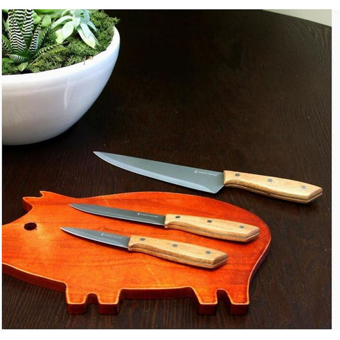 - 3-piece cutlery set including chef's knives and paring knife