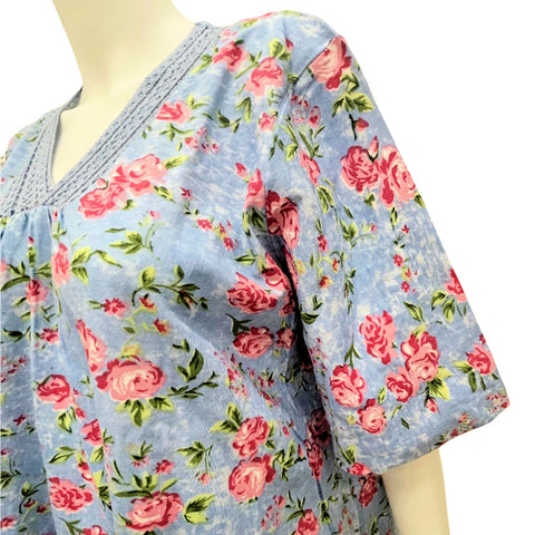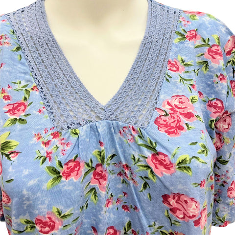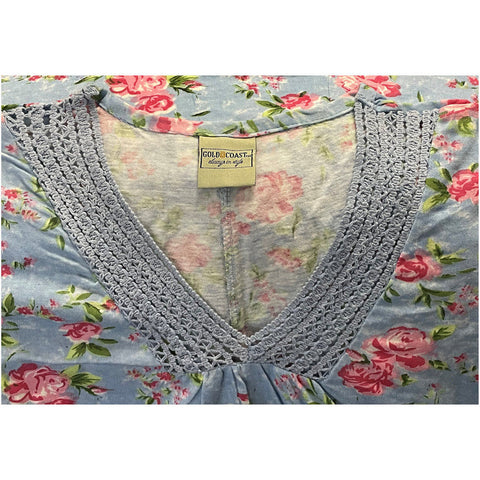 Gold Coast Women's Floral Night Gown in Blue - Medium -