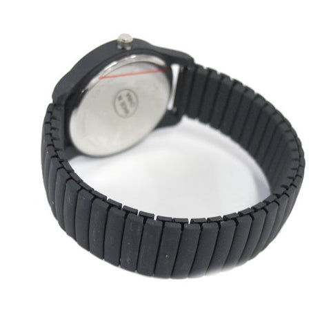 This black Speidel Express watch features a matte black band, dial and case. The watch has a quartz movement and numbered 12-hour display with luminous hands.