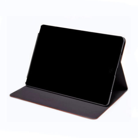 This stylish iPad case features a rich tan hue with a faux-suede exterior for a look that is great for toting around the office or getting some work done at a local coffee shop. It has a camera hole as well so you can easily take photos, and a flap folds over the screen to protect it from dirt, grease and liquid as you go about your day. Simply snap your iPad into place and your device will be looking better than ever.