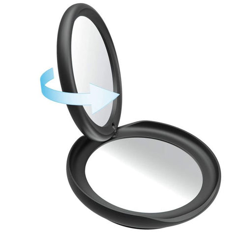 - Swivel top mirror provides standard reflection and easily collapses flat