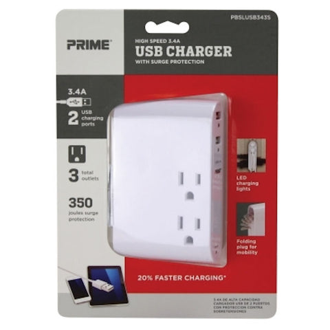 Prime Wire & Cable 3 Outlet Surge Tap with Usb PBSLUSB343S