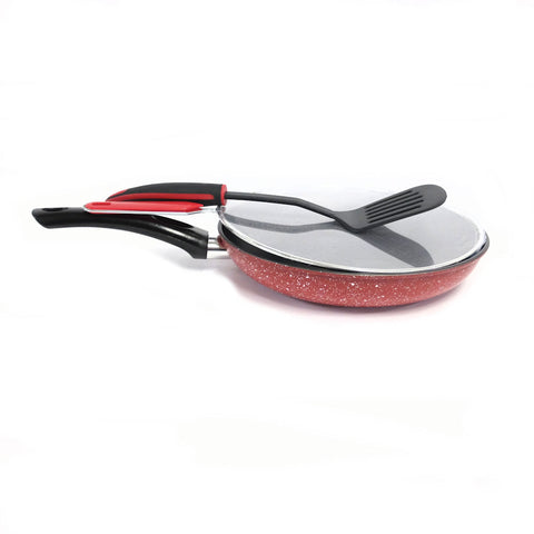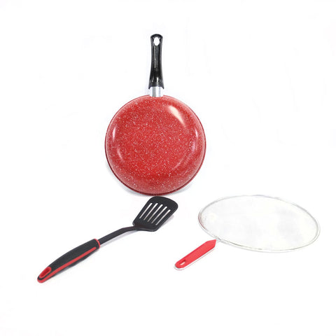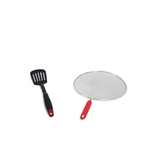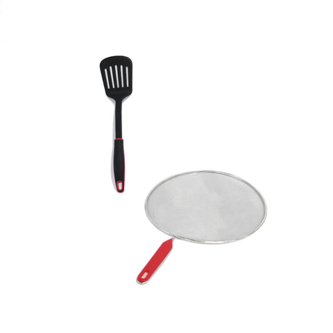 This 10-inch non-stick fry pan features a stainless steel base. Food easily slides off the non-stick surface, which makes this a great tool for cooking omelets, eggs, bacon, pancakes and more. The splatter shield made with an extra-fine mesh and odor-absorbing carbon fiber, this splatter screen keeps cooking odors in check while protecting the stove, countertops and cooks from splattering grease. The stainless steel splatter guard cleans up easily. Spatula is an essential cooking utensil for completing a variety of kitchen tasks. Safe to use on all cookware surfaces, this handy kitchen tool is dishwasher safe and features an easy-grip handle.