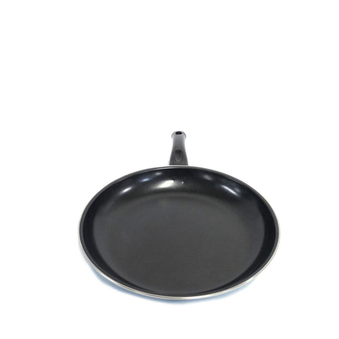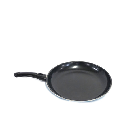 This 12-inch non-stick fry pan features a stainless steel base. Food easily slides off the non-stick surface, which makes this a great tool for cooking omelets, eggs, bacon, pancakes and more.
