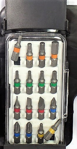 Purchase Contains: Reversible Ratchet Bit Driver, Handy Storage Case, 16 Vanadium Bits and Screwdriver