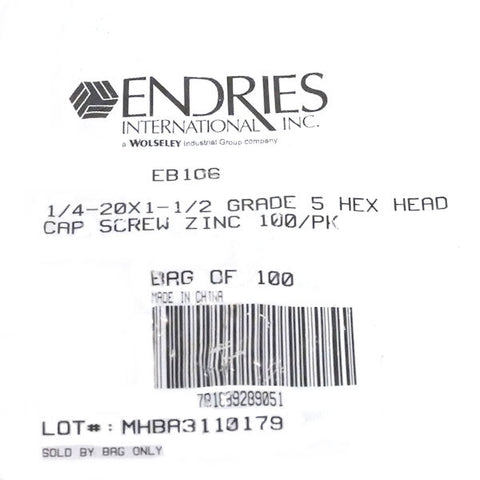 Endries International 1/4-20 X 1-1/2 Grade 5 Hex Head Cap Screw Zinc - 100 Pack -