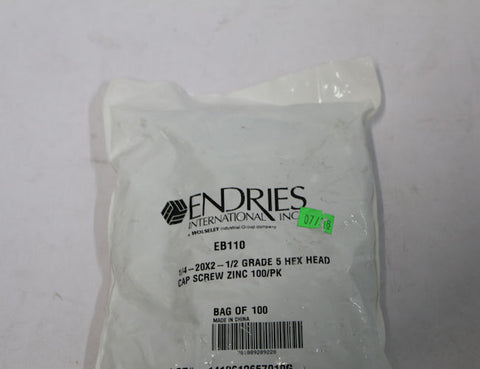 Endries International 1/4-20X2-1/2 Grade 5 Hex Head Cap Screw - 100 Pack -