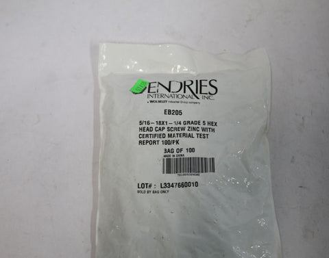 Endries International 5/16-18X1-1/4 Grade 5 Hex Head Cap Screw - 100 Pack -