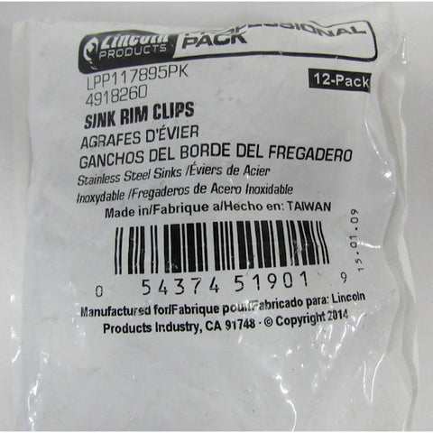 Lincoln Products 117895 Stainless Steel Sink Rim Clips 12 Per Pack, QTY: 6