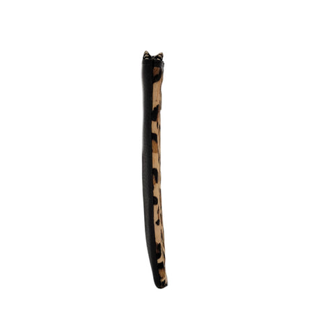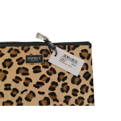 The Olivia is a Genuine leather and calf hair pouch style bag from Osprey London. The calf hair is constructed in a leopard print pattern, and the backside is a pebbled black faux leather. The interior is lined and has four credit card slips. The pouch has polished metal hardware including the zip closure. Dimensions (Overall): 7 Inches (H) x 9.5 Inches (W) x 1/2" Inches (D)