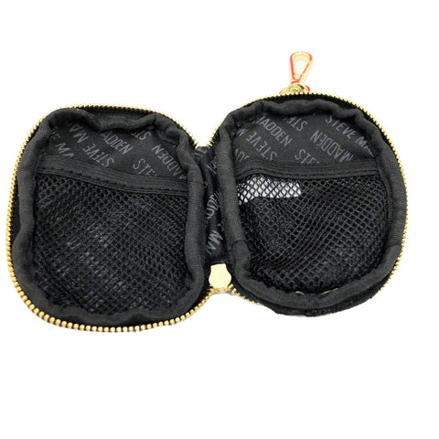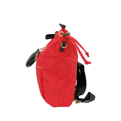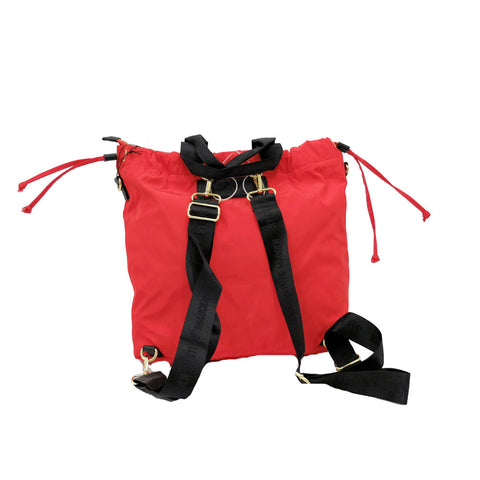 You have endless possibilities with this versatile bag from Steve Madden. Just detach and move the backpack straps and convert this to a tote or crossbody carry. The exterior is red with gold toned hardware including the Steve Madden logo plate. This bag features a top zip closure along with a double sided drawstring cinch closure and exterior front zippered pocket. The interior is lined and has a zippered pocket and two slip pockets. The bag is made of polyester and measure approximately 16 Inches (H) x 14 Inches (W) x 5 Inches (D). This also comes with a coordinating Steve Madden pouch to hold your favorite earbuds. The faux leather pouch has a zip around closure and measures 4" (W) x 3" (H) x 1" D.