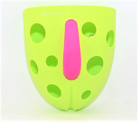 Scoop, strain and store bath toys in seconds! This large capacity basket holds many toys. The drain holes allow for rinsing and air drying. Attaches to tub wall with hanging bracket.