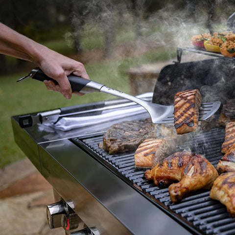 Master grillers need a professional tool set. The Char-Broil Medallion Series 2-Piece Toolset has everything you need. Spatula and tongs––both with secure grip handles and a stainless steel design makes it easy on your eyes. Take command of your grilling operation with this 2-piece durable toolset. Flipping burgers has never been more stylish.