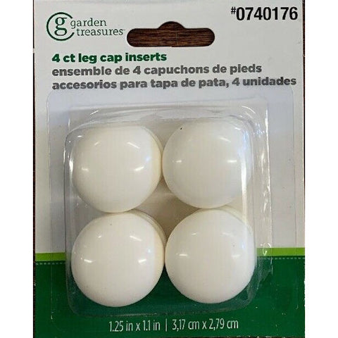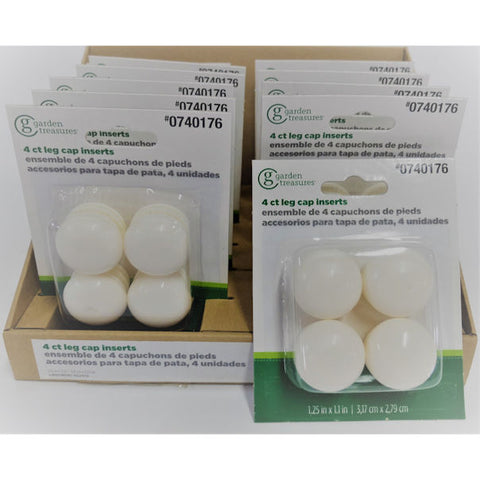Leg cap inserts from Garden Treasures are perfect to protect the legs and surfaces of your outdoor areas. The caps are made of durable plastic construction and are stain resistant. They fit most 1-1/4 inch legs. Packaged in sets of four, you will receive 12 packs for a total of 48 caps. Approximately 1.2" in diameter.