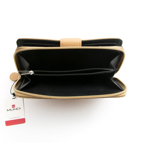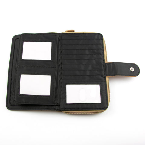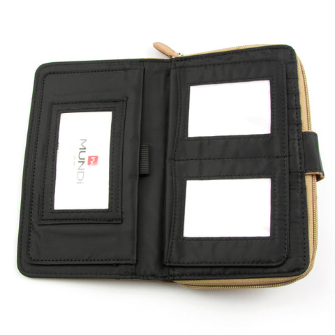 My Big Fat Wallet from Mundi is the perfect accessory to hold your essential items in one place. This wallet offers tons of organization and storage with a main compartment that has nine card slots, a checkbook holder, one ID window and five picture pockets. A zip closure opens up an accordion pocket that has three compartments, one with a zip closure, and a pen holder. This durable wallet is constructed of red Faux Leather. Dimensions: 7-1/4" L x 4-1/2" H x 1" D.