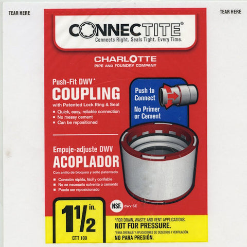 - ConnecTite fittings are push-fit drain, waste and vent (DWV) fittings. They offer quick installation, with no tools or solvent cement needed. They are compatible with PVC and ABS pipe, and can be reused and repositioned. ConnecTite is environmentally friendly because no primer or cement is used, making it better for human health and safety. Used in gravity-fed waste elimination better for human health and safety. Used in gravity-fed waste elimination systems, the fittings are for non-pressure applications where the temperature will not exceed 140 degrees F. Charlotte Pipe products are manufactured in the USA.
