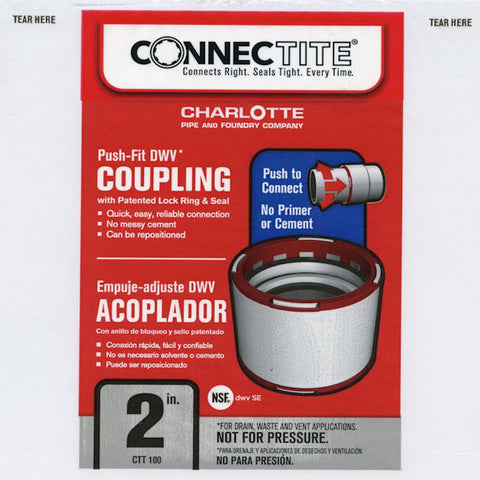 Charlotte Pipe CTT 00100 1000 Connectite Coupling, PVC,2",White CTT 00100 1000HC -
