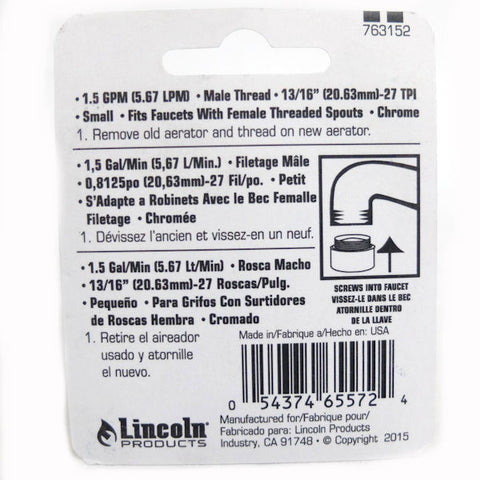 Lincoln Products Male Small Water Saver Aerator in Chrome 103152 -